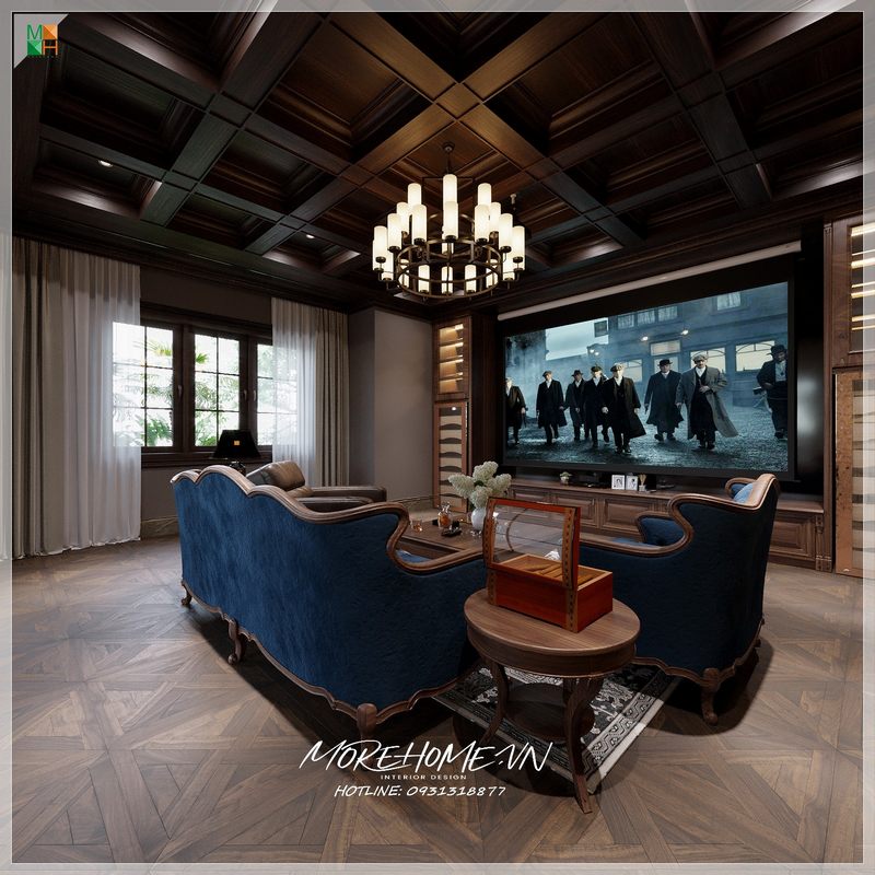 Sau những giờ làm việc, học tập căng thẳng, không gian giải trí tốt nhất để giải tỏa căng thẳng cho gia chủ là rạp chiếu phim tại nhà yên tĩnh, không ồn ào.